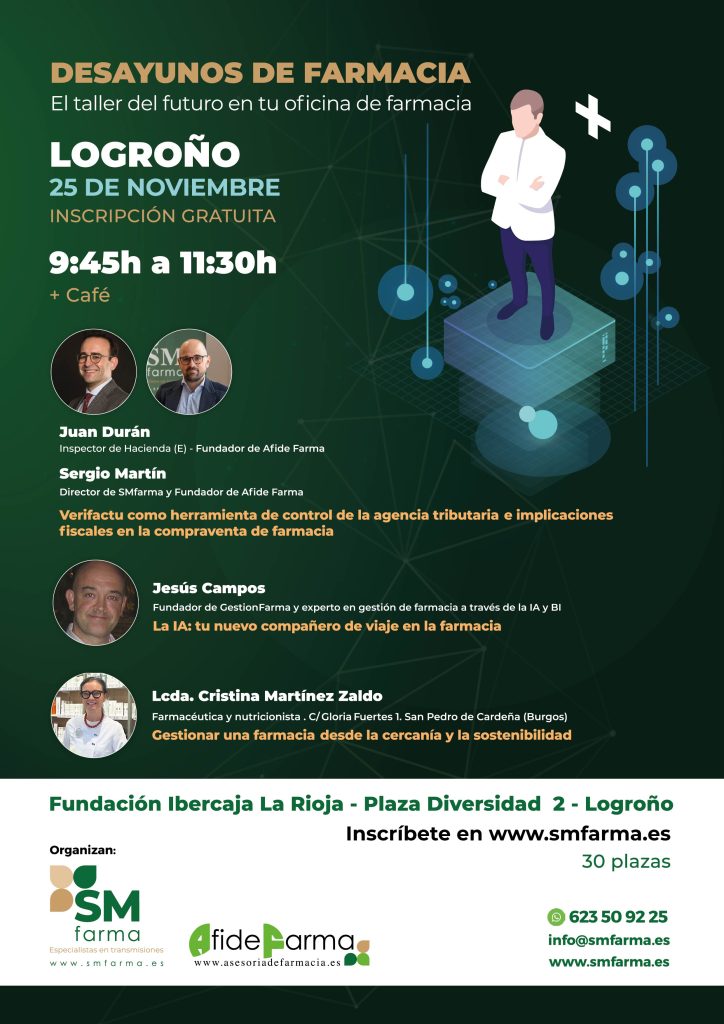 SMfarma y Afide Farma se desplazan a Logroño para hablar sobre la integración de VERIFACTU en la gestión de tu farmacia, mejorar la sostenibilidad y la gestión con ayuda de la IA.
