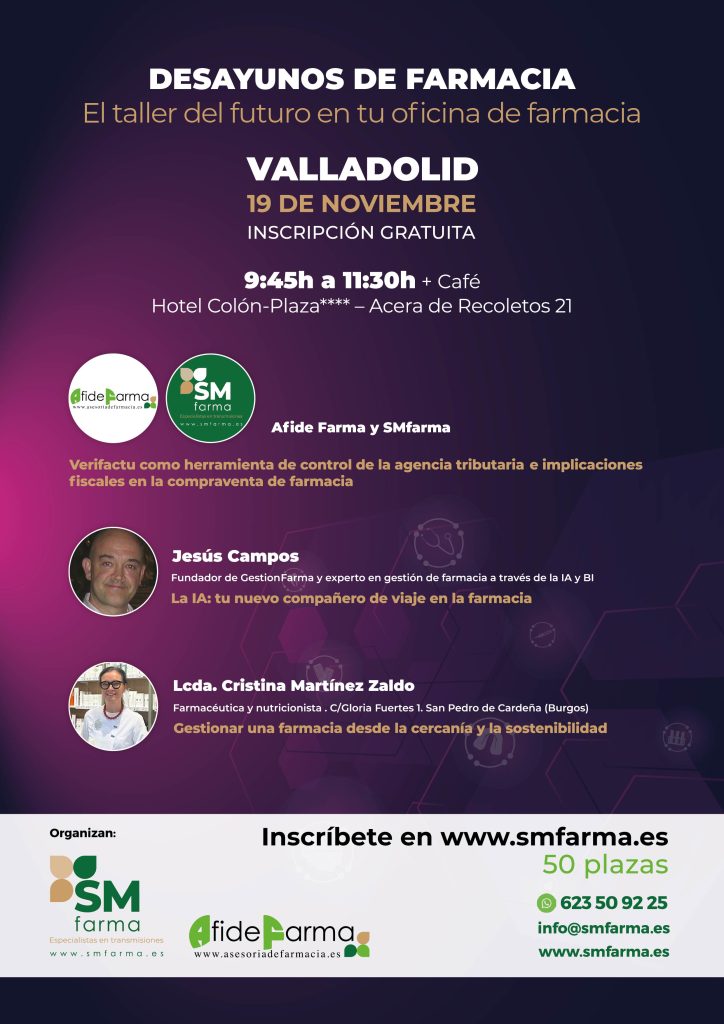 SMfarma y Afide Farma se desplazan a Valladolid para hablar sobre la integración de VERIFACTU en la gestión de tu farmacia, mejorar la sostenibilidad y la gestión con ayuda de la IA.